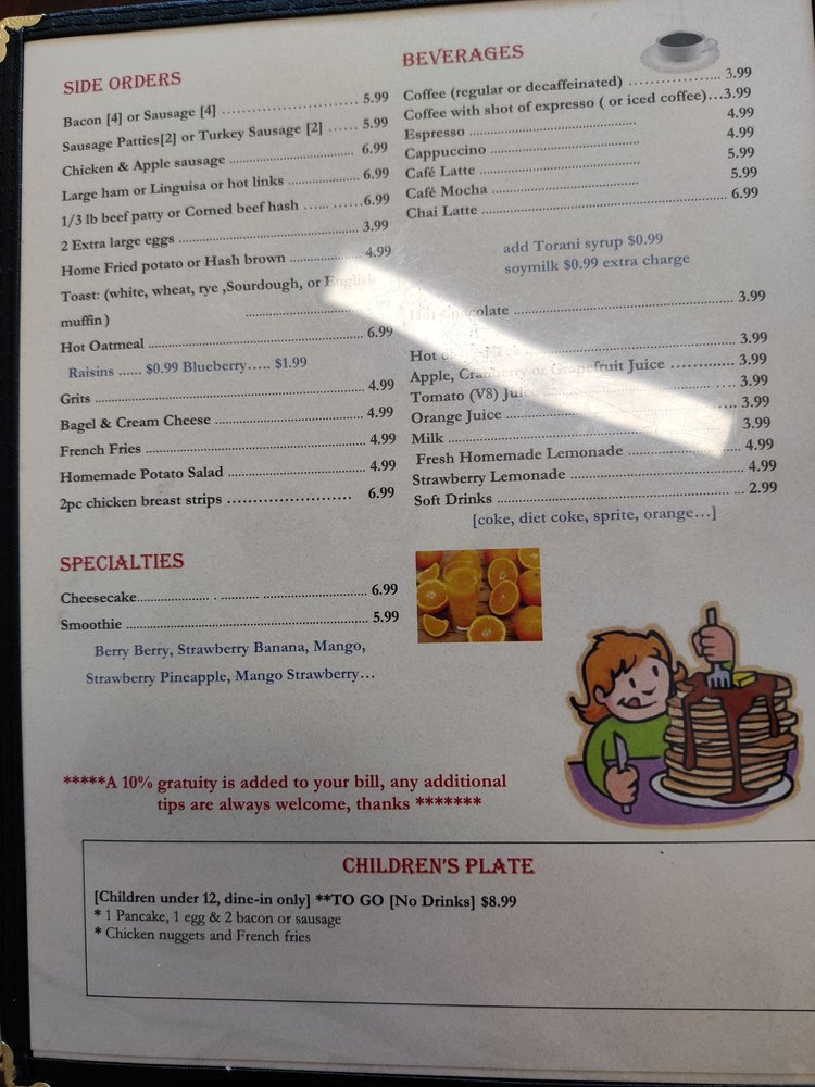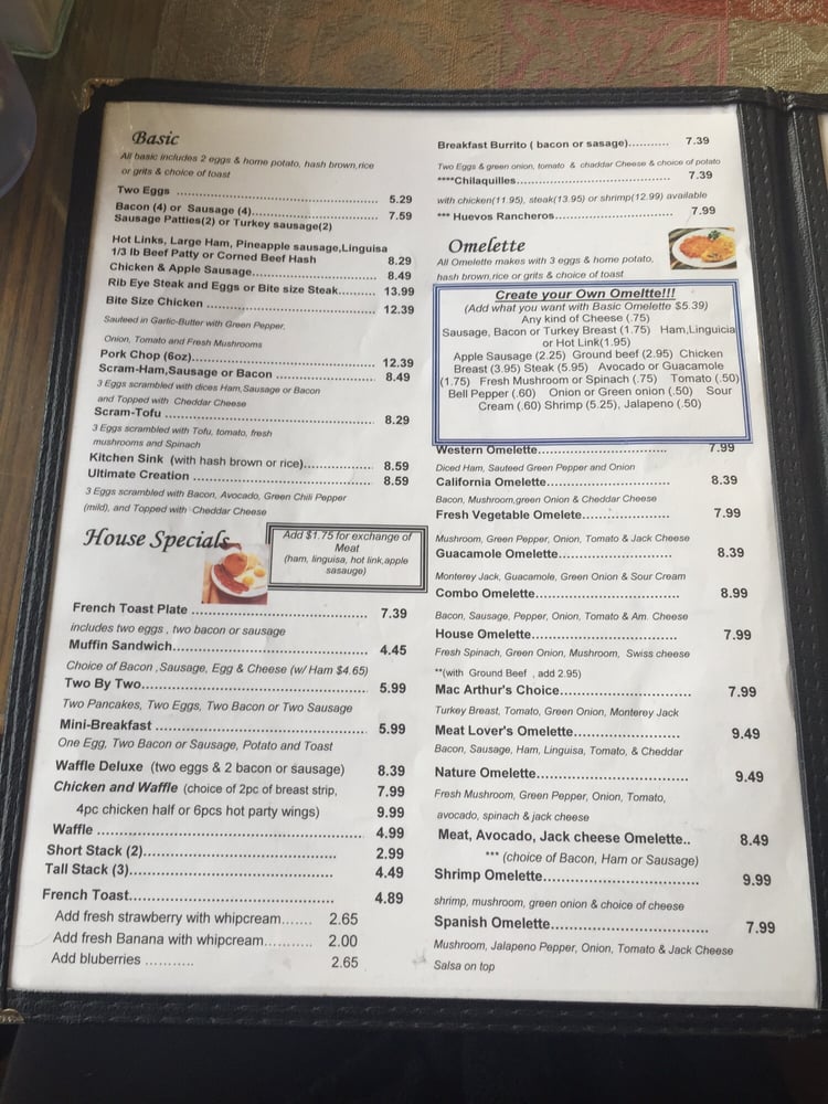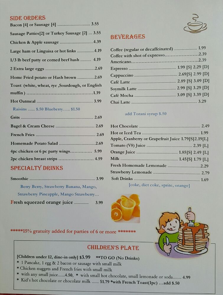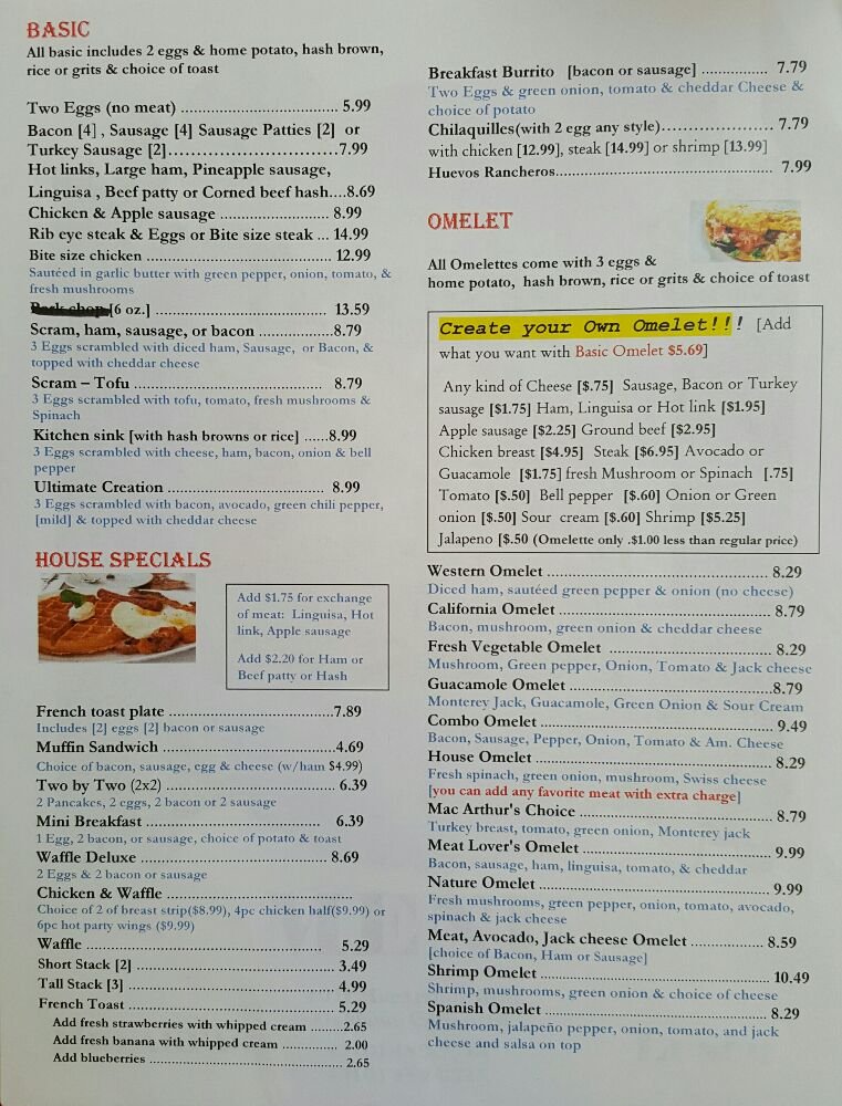 Introducing the menu at Cafe of the Bay, a charming Breakfast & Brunch spot in Oakland, CA. Offering a plethora of delicious options, from traditional breakfast plates like Two Eggs with various meats to house specials like French Toast Plate and Chicken & Waffle. The omelet section boasts creative choices such as California Omelet and Shrimp Omelet. With a diverse menu catering to vegetarians and meat lovers alike, Cafe of the Bay ensures a satisfying dining experience. The customer review praises the delicious food and generous portions, especially for delivery orders through services like Uber Eats. Don't miss out on this delightful dining destination for a hearty and satisfying meal experience.